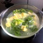 • Tambahkan baso dan tahu.  Masak hingga mendidih dan matang.  Masukkan daun bayam, lada, garam, dan kaldu jamur.  Masak sebentar.  Hidangkan.